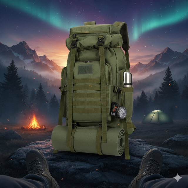 Тактичний рюкзак об’ємом 70 літрів призначений для використання в польових умовах, туристичних походах, військових завданнях, страйкболі, полюванні та риболовлі. Модель виготовлена з вологозахищеної синтетичної тканини, що забезпечує стійкість до зношування та збереження форми при різному ступені завантаження.