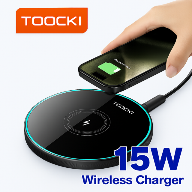 Бездротова зарядка для смартфона Toocki TQ-WL01 15Вт (чорна) — це елегантне та ефективне рішення для швидкої зарядки ваших пристроїв. Завдяки максимальній потужності 15 Вт, вона забезпечує відновлення заряду смартфона набагато швидше за стандартні бездротові зарядні пристрої.